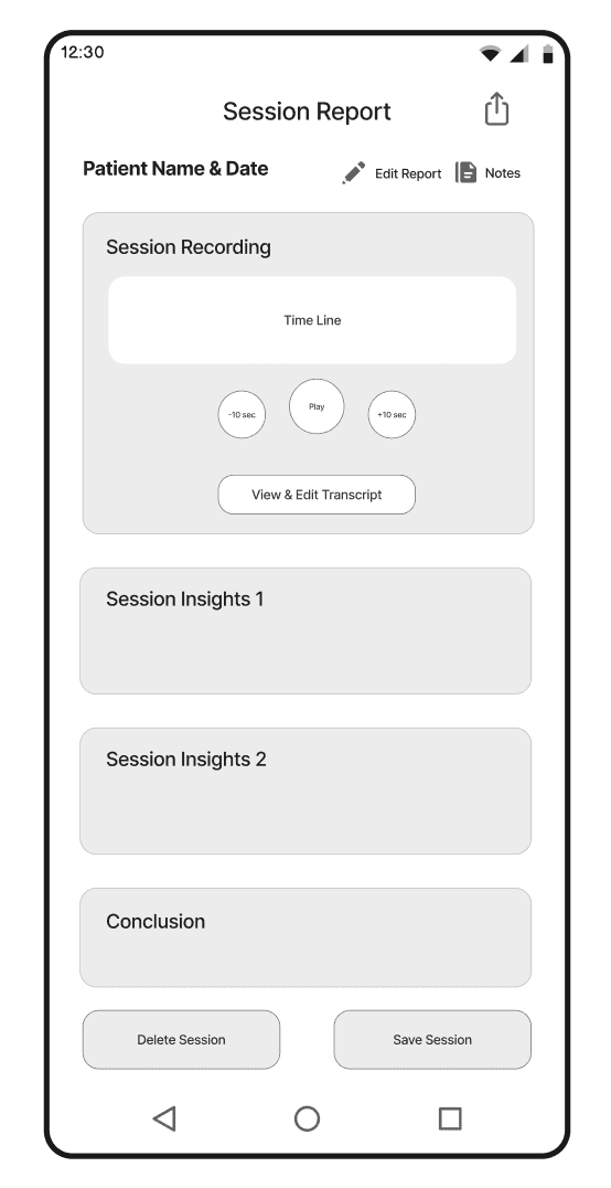 Goal: Surface analytics about the session for the SLP's review, another route to review and edit transcripts after processing, and space for patient notes