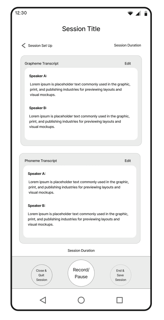 The team had moved past the discovery phase, completing user interviews with other SLPs and synthesizing the results. They had also finished a low-fidelity prototype of the most foundational pages for the application and started the development of the LLM that would power the transcription. My role was to continue working on the design, informed by the completed research.