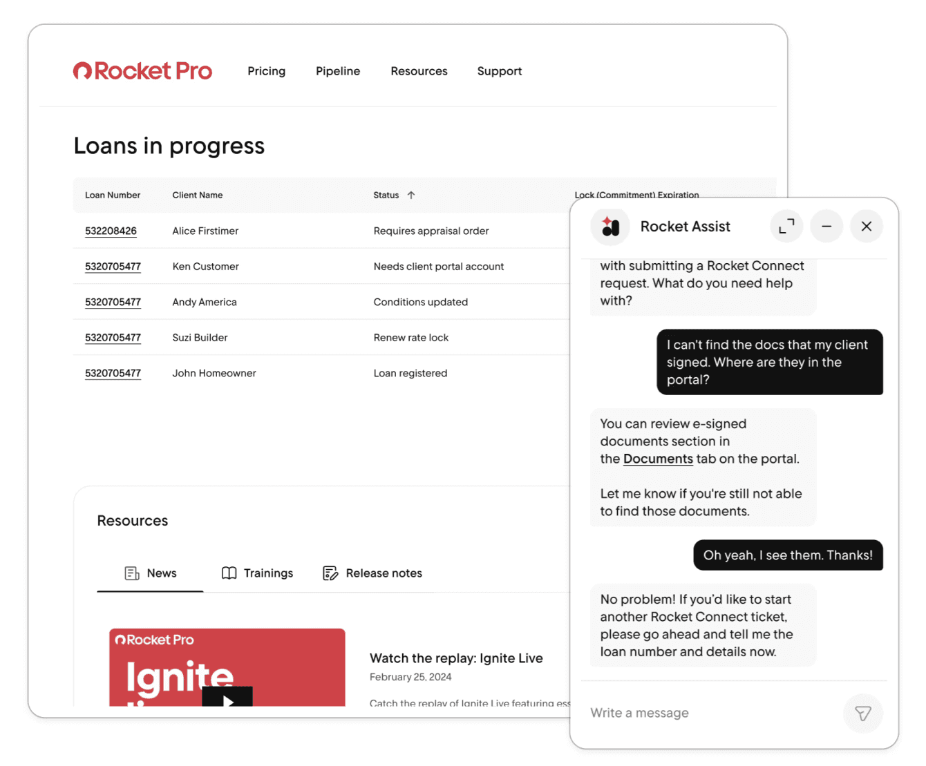 In May of 2025, the Rocket Pro product team implemented Rocket Assist, a consumer-facing chatbot, into the Rocket Pro broker platform. It drastically improved the broker user experience by allowing them to submit support tickets without opening a separate application. This prompted the product team to ask how else the chatbot could continue to improve the broker experience and boost efficiencies.